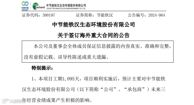 首次斩获海外订单,节能铁汉(300197)就锚定了未来三年的业绩增量。