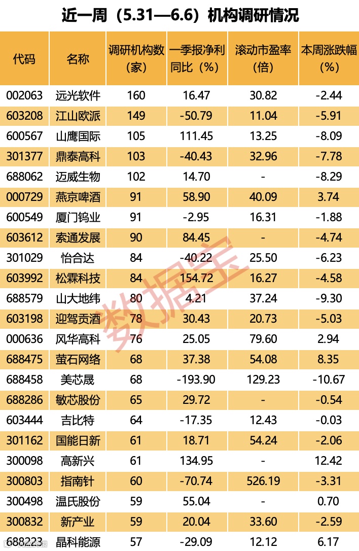 近一周机构调研个股数量有370多只,远光软件成为调研机构数量最多的股票。