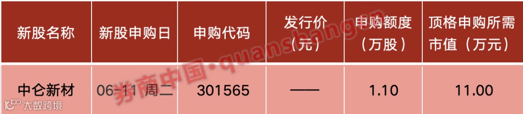 本周(6月3日~6月7日)没有新股发行。下周(6月10日~6月14日)有1只新股发行:中仑新材。