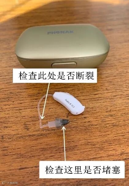 开放式助听器是由本体及扬声器两部分组成,用家可以检查连接两个部件的管线有没有损坏。另外,由于扬声器经常进入用家的耳道内,上面的小孔有机会被耳垢堵塞,导致无声。