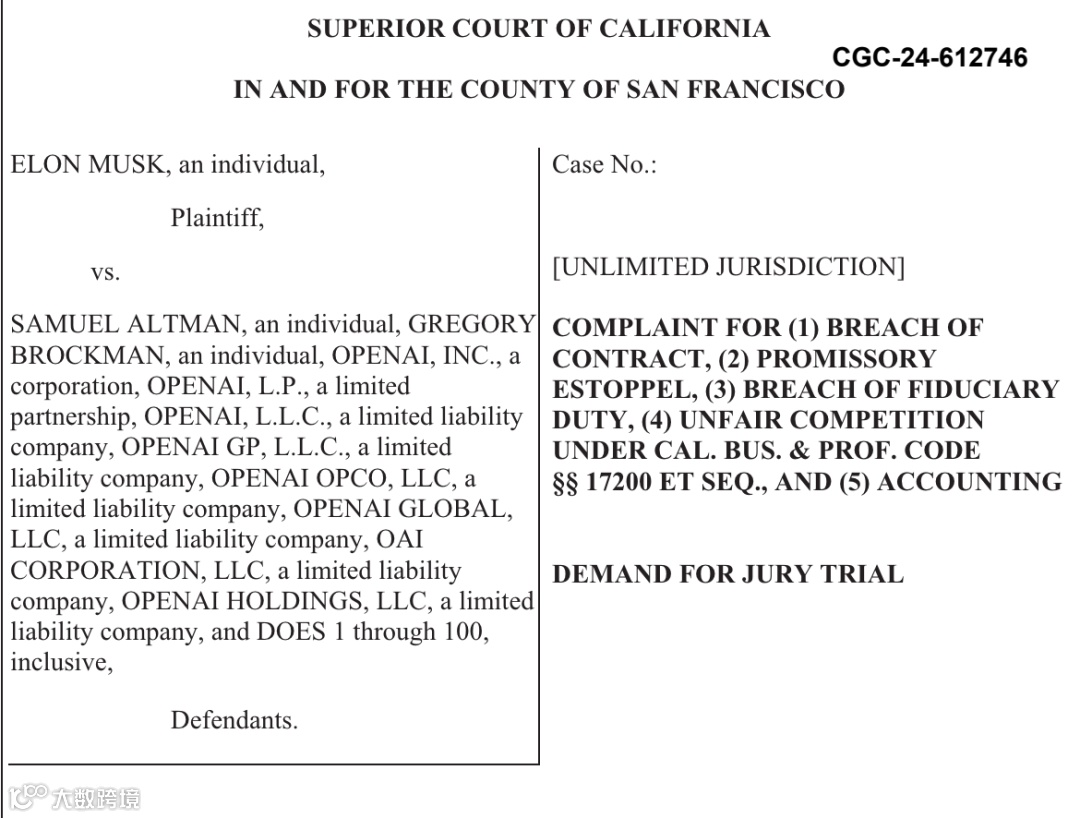 诉讼文件显示,马斯克认为,OpenAI及其联合创始人以多种独立的方式违反了创始协议,至少包括: