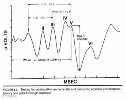 ( 波Ⅰ:听神经,波Ⅱ:耳蜗神经核;波Ⅲ:上橄榄 核,波Ⅳ:外侧丘系,波Ⅴ:下丘核)