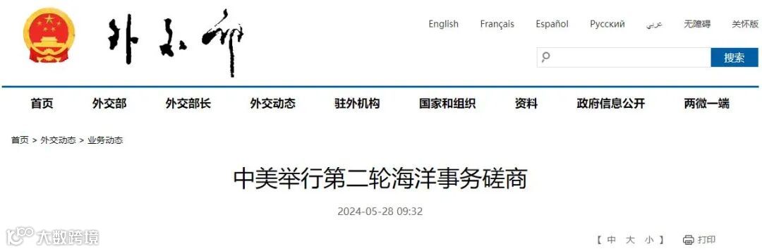 据外交部网站28日消息:2024年5月24日,第二轮中美海洋事务磋商以视频形式举行。外交部边界与海洋事务司司长洪亮同美国国务院中国事务协调员、东亚局助卿帮办蓝墨客共同主持会议。