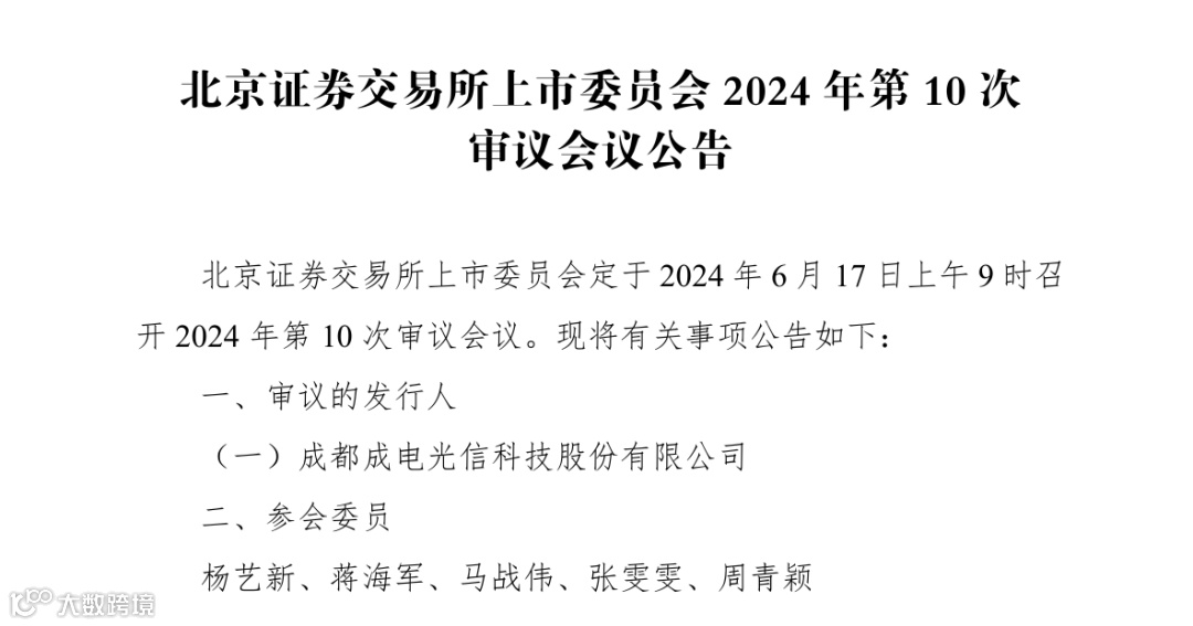 6月7日晚间,北交所官网显示,上市委定于6月17日上午召开审议会议,审议成电光信首发申请。这是北交所上市委会议在暂停4个月之后,首次重启。与此同时,这也意味着,三大交易所的上市委会议均已恢复。据悉,暂停期间,监管层对上市规则等进行了完善。