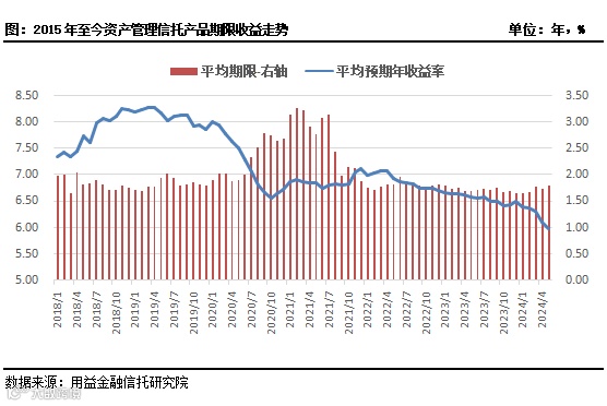据公开资料不完全统计,截至2024年6月3日,5月非标信托产品的平均预期收益率为5.99%,环比下降0.13个百分点;产品的平均期限1.80年,环比延长0.06年。