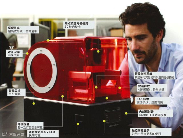 美国3D打印机产商Asiga 生产的Asiga PICO 2 HD 3D打印机,基于Asiga的SAS(Slide-And-Separate,滑动与分离)技术,SAS™工艺可实现任何颠倒立体平版印刷系统的最低制造力,从而实现最小的支撑结构和非凡的精确度。在行业中享誉盛名,所以PICO 2 无论在精确度、速度、稳定性,都准确无误,直接制成的成品至为理想。它的开放物料系统,让用户可灵活的选用Asiga及其他供应商提供的物料,生产专业的定制式耳壳,软耳模、硬耳模、齿科、珠宝首饰等用具。
