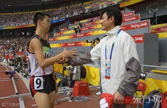 2008北京残奥会上刘德华(右)为苏桦伟打气