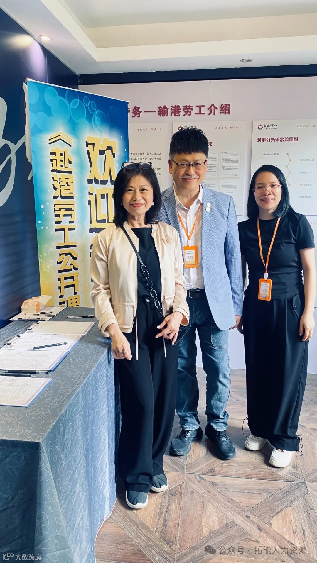 公开课开始提前到场人员,一起参观了赴港务工说明的详细流程的广告展架。