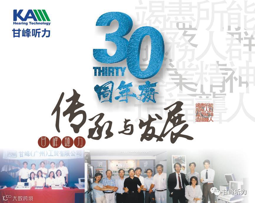 2017适逢是甘峰集团的30周年,是个承上启下具有划時代意义的年份。 甘峰的听力专业团队会以【继往开来, 再创高峰】的精神、【竭尽所能,服务人群,专业精神,造福聋人】的宗旨,与各位共同在【粤港澳】三地缔造听力康复事业更美好的明天!
