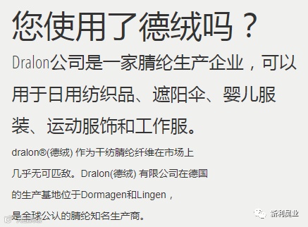 现在基本上清楚了德绒是什么面料了吧,市场上很多叫德绒的面料,但真正含德绒成分的面料确实不多,追求外观和低价,放弃了一款面料原本该有的性能,所以不是所有的发热面料都叫 “德绒面料”