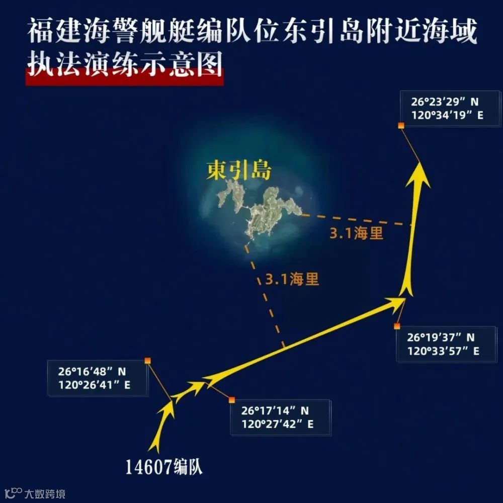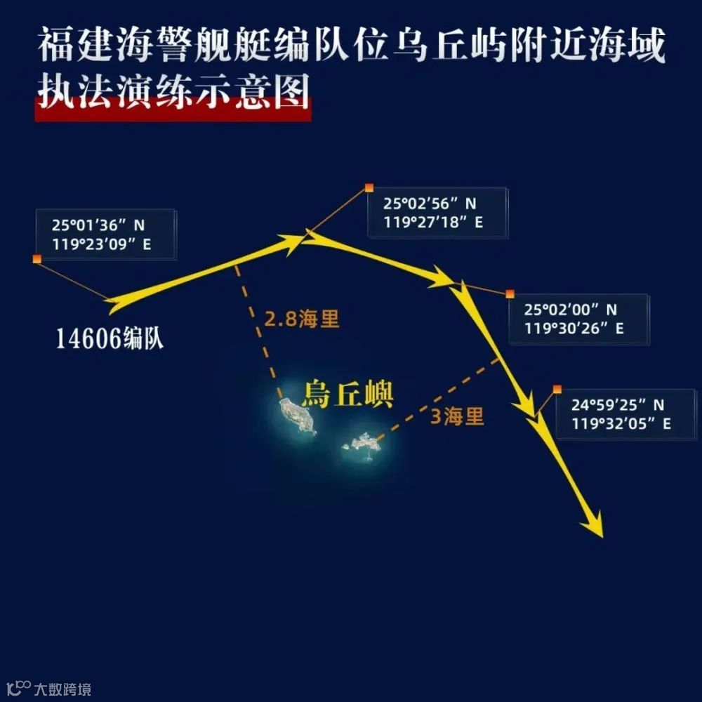 中国海警局新闻发言人甘羽表示,5月23日,福建海警组织舰艇编队位乌丘屿、东引岛附近海域开展综合执法演练,检验联合巡航、快速反应及应急处置能力。