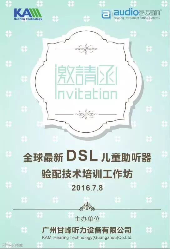 我们定于2016年7月8日在广州举办「全球最新 DSL 儿童助听器验配技术培训工作坊」,本次工作坊我们将邀请香港听力学家-----先生、加拿大听力学博士John Pumford,Au.D先生、 广东省残疾人康复中心听力部邱素梅部长为我们介绍最新助听器验配技术发展趋势,从而更好地为听障人士进行助听器验配。