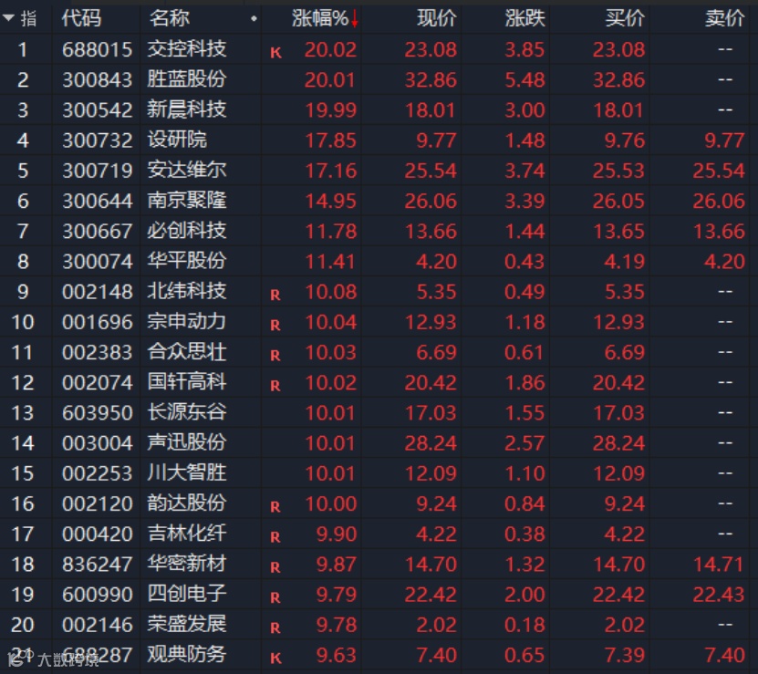 值得关注的是,低空经济概念股今日也表现强势,这个板块从上午开始就非常活跃,稳住了整个市场的人气。午后,低空经济板块涨幅进一步扩大,截至收盘时,低空经济板块涨幅超过4%,交控科技、胜蓝股份、新晨科技、长源东谷等近20只个股涨停。