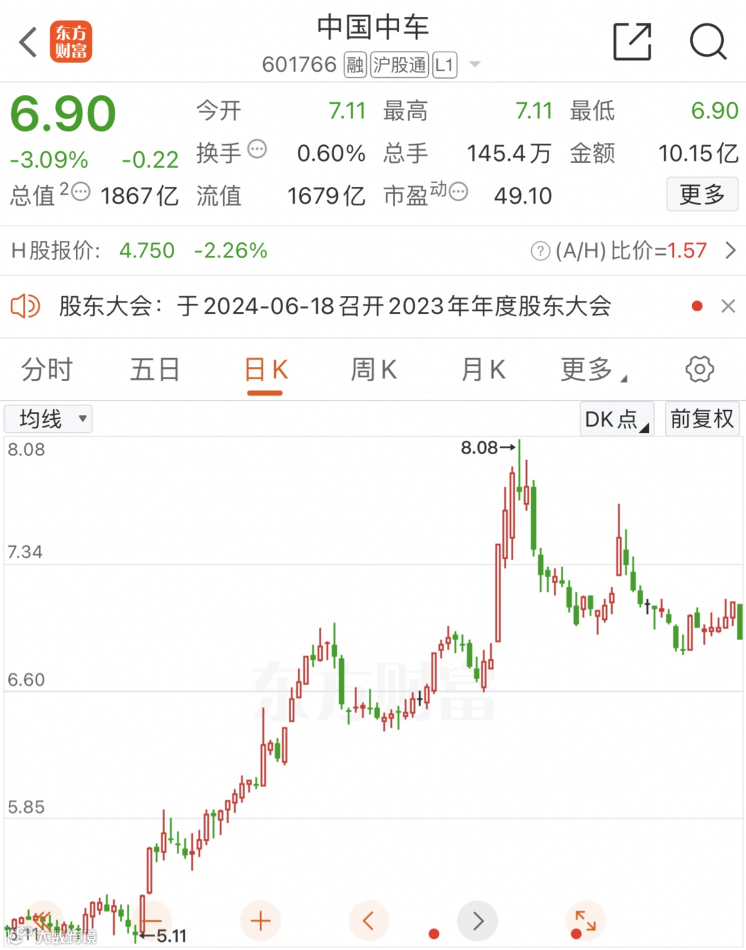另外,中国中车年内的表现也较为亮眼,截至最新收盘,年内累计涨幅为31.18%,远超同期大盘涨幅,最新总市值升至1867.41亿元。