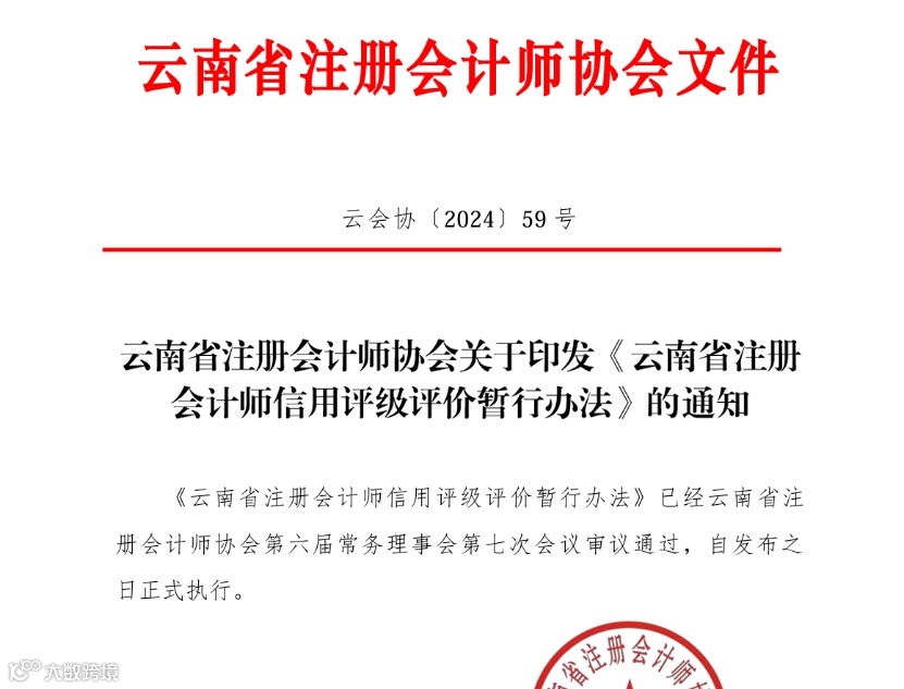 近日,云南省注册会计师协会印发了《云南省注册会计师信用评级评价暂行办法》(下称《暂行办法》)。