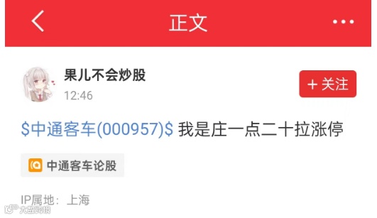 值得注意的是,在公司股价涨停之前,已有人在股吧平台预言涨停。12点46分,有股民发帖称:“我是庄一点二十拉涨停。”