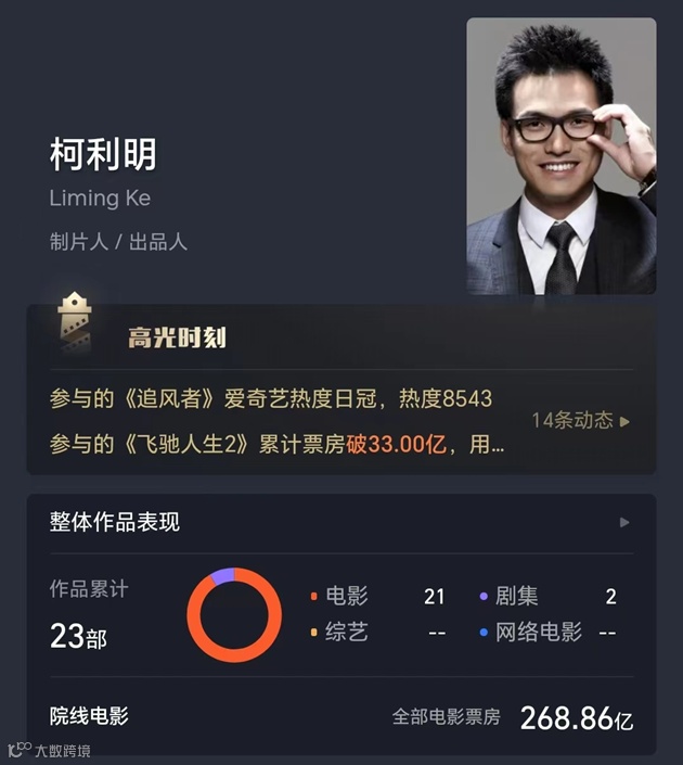 另外,自身作为“跨界者”的柯利明,也偏爱与青年、新锐导演合作,比如儒意一直是大鹏导演作品最大的“金主”。