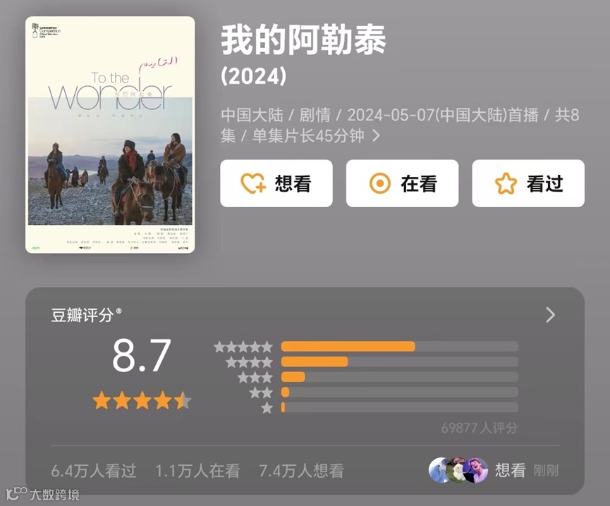 儒意与万达电影,已经在许多影视作品中共同出现。最近热播的爆款剧《我的阿勒泰》,儒意与万达影视(万达电影子公司)就同为联合出品方。