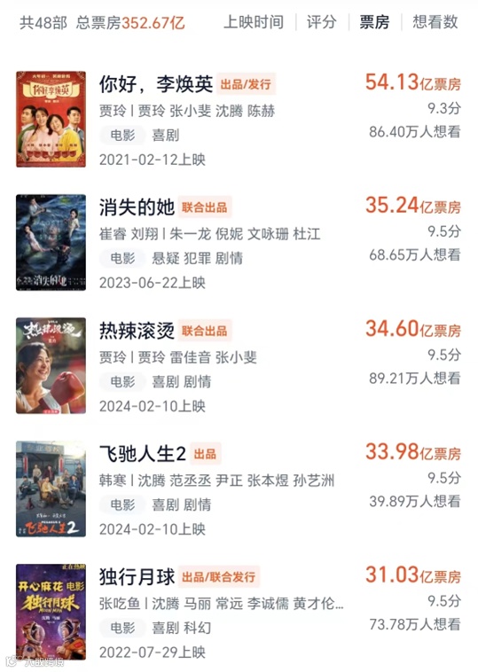 近几年,儒意更是成为爆款影视作品背后的最大赢家。或主导、或参投,儒意以各种形式参与了大量热门电影。今年春节档上映的8部影片,儒意同时参与了4部,且这4部电影票房领先。