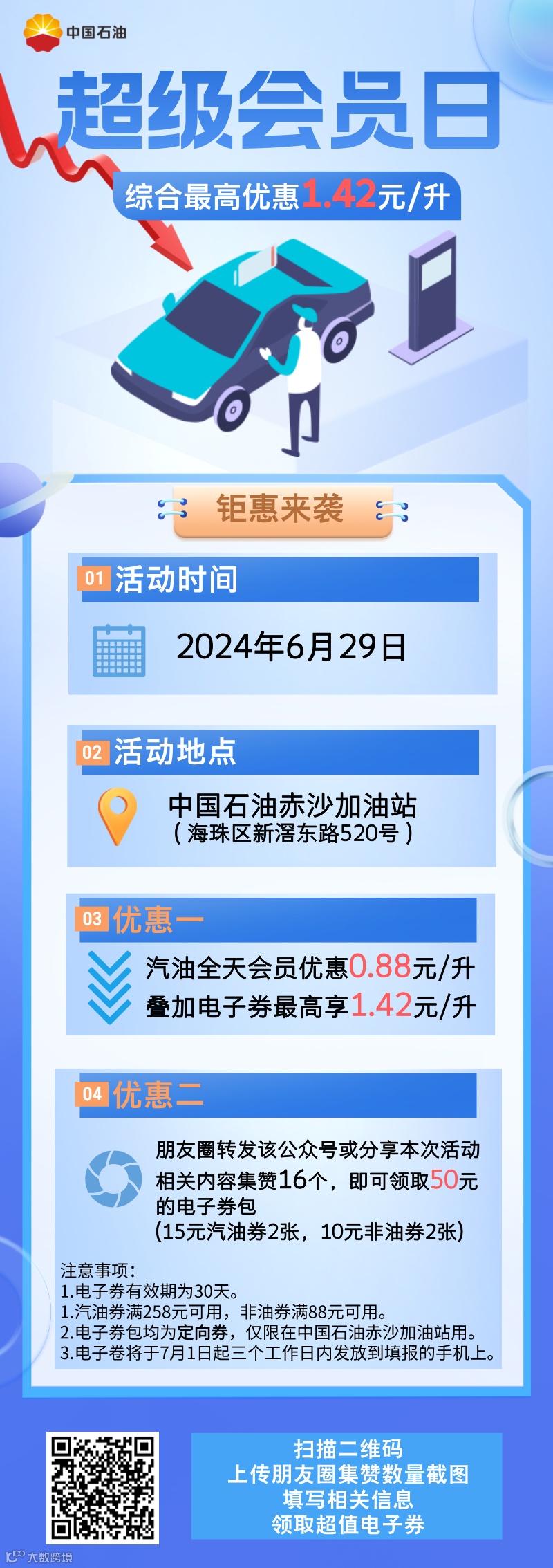 超级会员日,综合最高优惠1.42元/升!