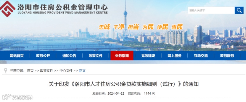 4月22日,洛阳公积金管理中心印发《洛阳市人才住房公积金贷款实施细则(试行)》的通知。