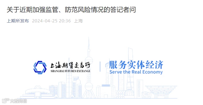 4月25日晚间,上海期货交易所(下称“上期所”)在官微发布消息,就近期加强监管、防范风险情况答记者问。