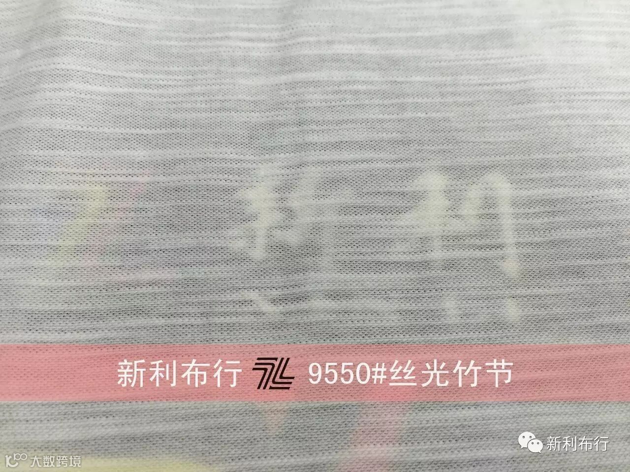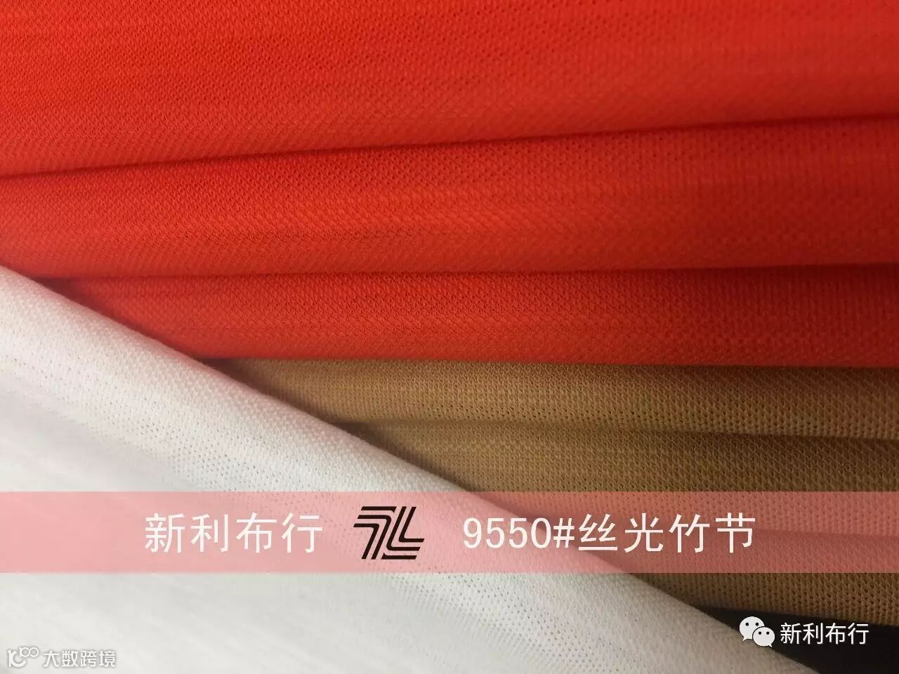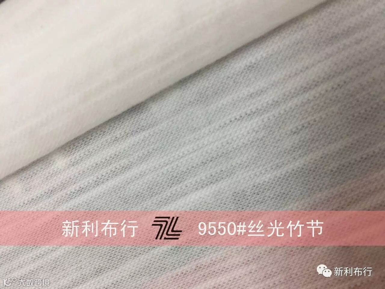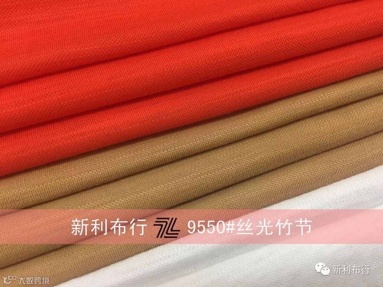 新利昊业9550#丝光竹节,幅宽170cm,克重125g,布面竹节纹路清晰,手感爽滑,直挺,具有吸汗透气、柔软、防敏感、容易清洗、不易起毛球、保湿耐热等特性。用9550#做成的衣服上身效果笔挺、靓丽且有质感,布料柔软舒适、亲肤贴身。