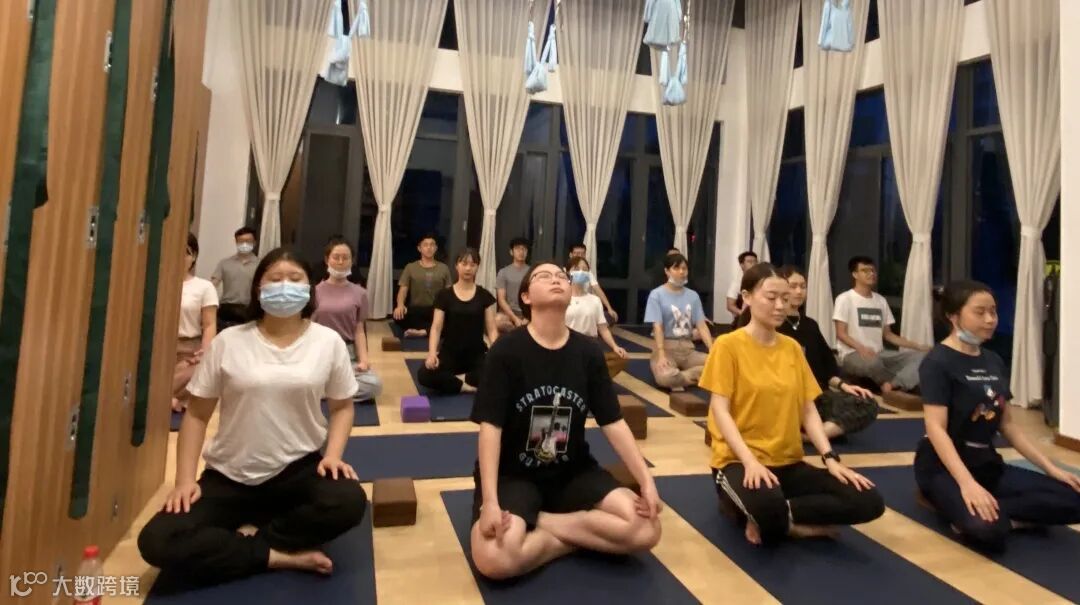 瑜伽运动于晚上18:30分开始,通过瑜伽老师介绍注意事项,参与培训的员工们都上缴了自己的手机,伴随着轻柔的音乐,全体学员盘腿而坐,跟随老师的指导呼吸、调息、冥想,循序渐进地进入到轻松的瑜伽世界,全身心投入参与瑜伽活动。