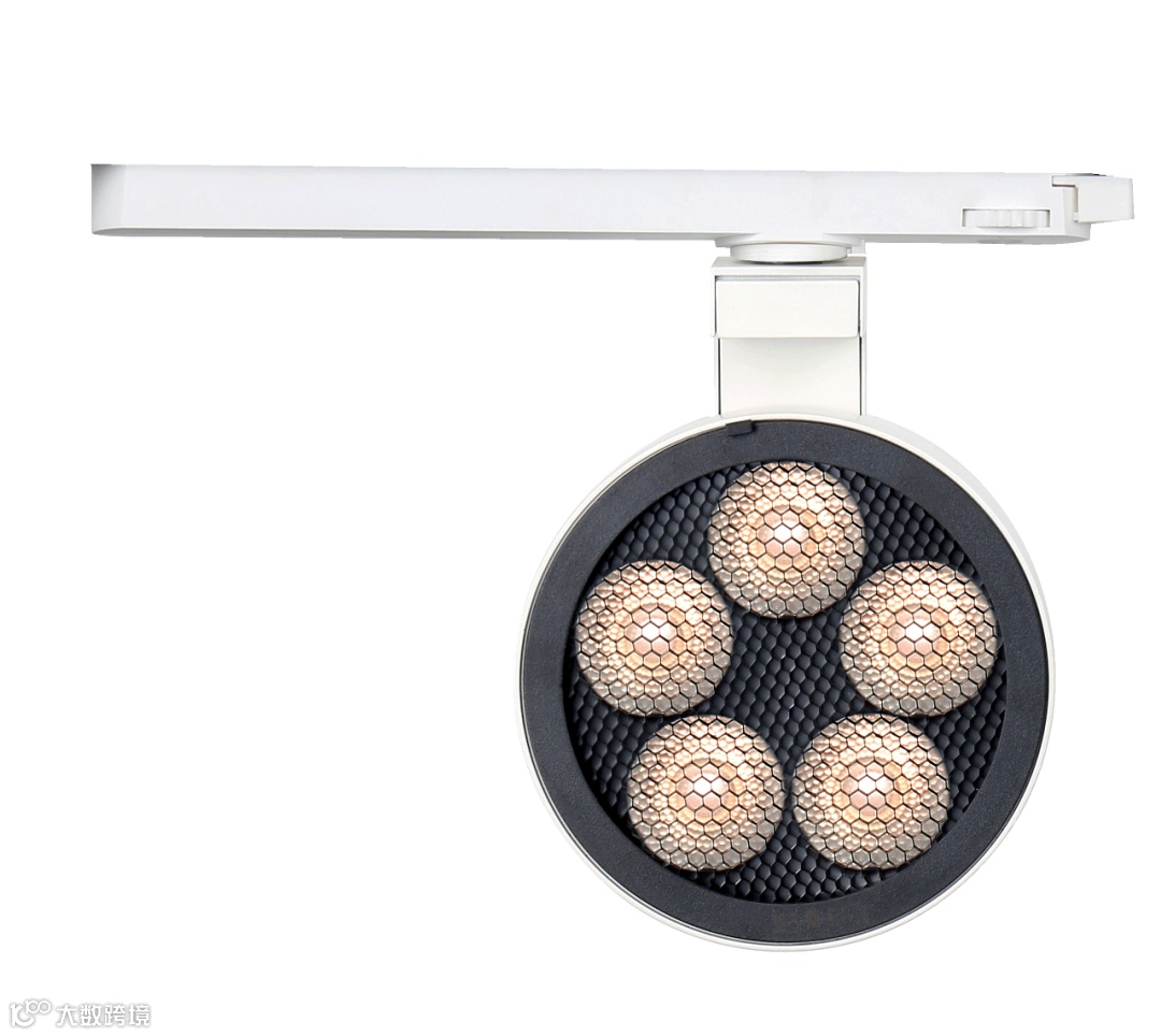 E系高空5合1轨道射灯搭配精密光学膜配件,使用空间高度7-15米之间,通过更换光学模组可实现光束角5°、10°、25°、38°、60°的变化,从而解决在实际应用中可不换灯只换配件改变光束角的问题。