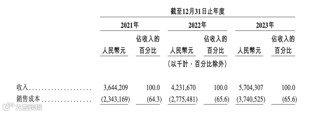 根据茶百道公告,2021年、2022年和2023年,茶百道收入分别为36.44亿元(人民币,下同)、42.32亿元和57.04亿元。