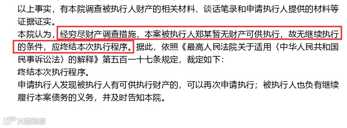 最终法院认为,经穷尽财产调查措施,本案被执行人郑爽暂无财产可供执行,故无继续执行的条件,经与申请执行人约谈,同意终结本次执行程序。申请执行人(东开之星)发现被执行人有可供执行财产的,可以再次申请执行。被执行人郑爽也负有继续履行本案债务的义务,并及时告知法院。