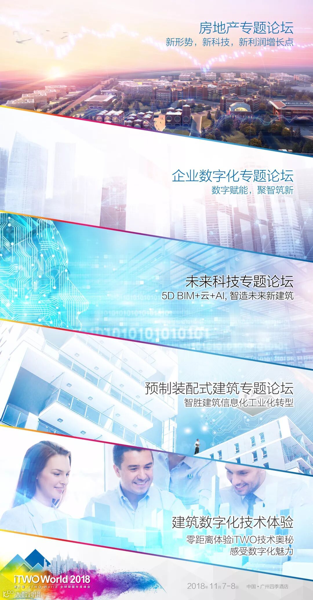 全球建筑及房地产业年度顶级科技盛会——iTWO World 2018全球峰会,将于今年11月7日至8日再度荟聚花城广州。除聚焦行业数字化转型的大会主论坛之余,还设立了房地产专题、企业数字化专题、未来科技专题、预制装配式建筑专题,其中房地产专题论坛亦将邀请业内重量级嘉宾,深度解析与分享房地产行业发展的新形势、新科技,新利润增长点。