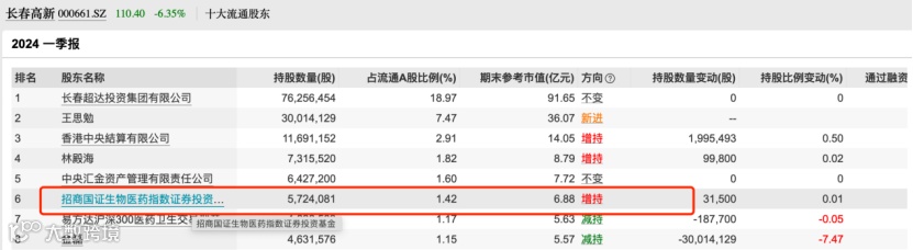 一季度,丘栋荣管理的中庚价值灵动灵活配置新买进长春高新,合计持有52.60万股,占流通A股的0.13%。中欧基金王健管理的中欧新动力A、中欧价值成长A等6只产品全部买进长春高新。另外一只基金华泰柏瑞沪深300ETF新买进长春高新前十大流通股东。