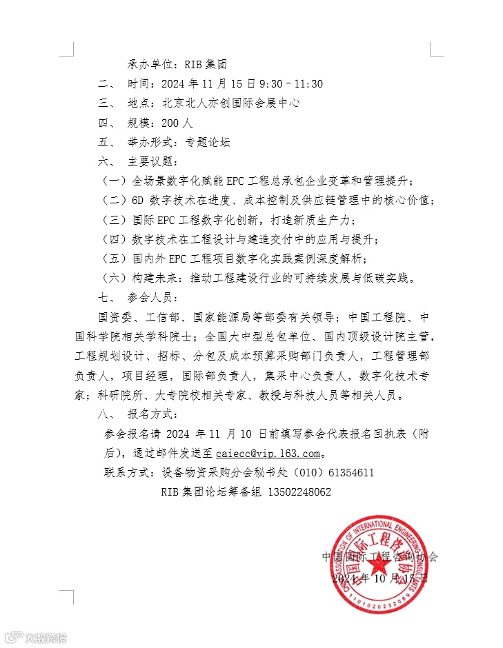 为加快我国数字经济发展,培育新质生产力,通过引入先进的数字技术,全面提高EPC国际行业生产效率和建造质量,促进绿色可持续发展,提升工程建设领域信息化建设水平,本届采购大会将举办“数字赋能国际工程EPC总承包项目管控论坛”,邀请来自工程与建筑领域的专家,从不同的角度和维度,深入探讨EPC工程总承包项目管理和工程建造企业数字化变革的现状、挑战、机遇和展望,以及如何利用全场景数字化技术实现管理提升、发展新质生产力。