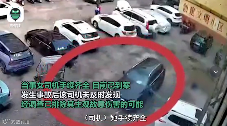 从视频监控看,小区内一司机驾驶奔驰车掉头时压到小孩,但司机并未下车查看,而是继续倒车,小孩再次遭到碾压,奔驰车司机在现场停留几秒钟后驾车驶离。
