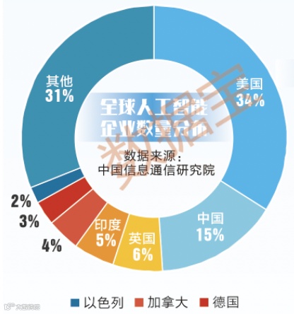 从企业发展看,全球人工智能企业在国别分布方面呈现“中美主导”格局。截至2023年三季度,全球人工智能企业有29542家。中美人工智能企业数占全球总数的近一半,美国有9914家(占比为34%),中国有4469家(占比为15%)。