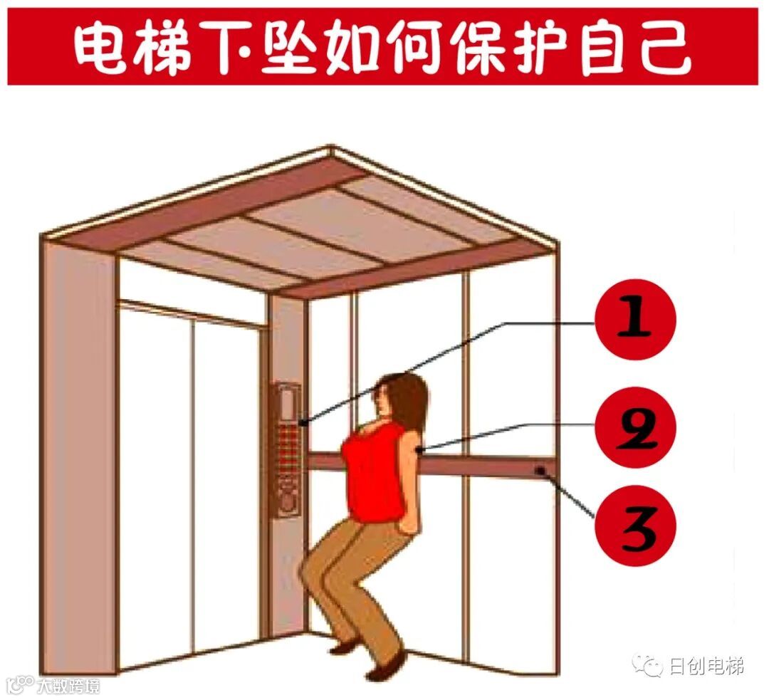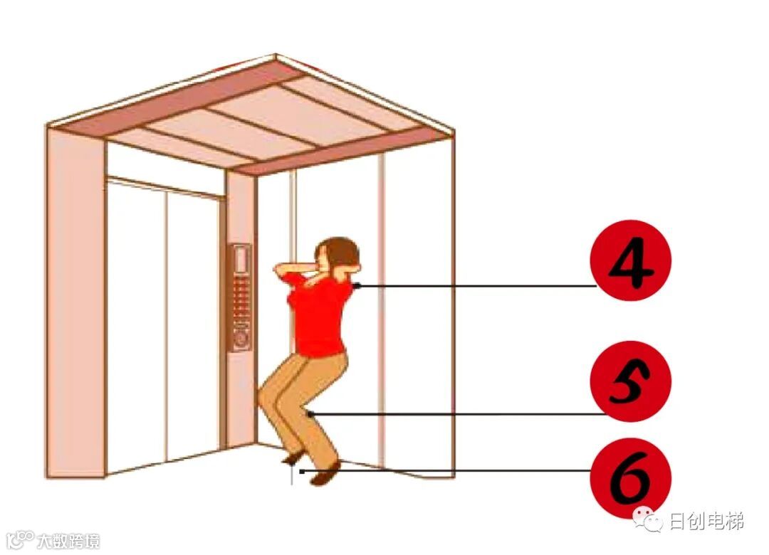 如果电梯内没有扶手,则需要用手抱住你的颈部,避免脖子受伤,这个动作非常关键。
