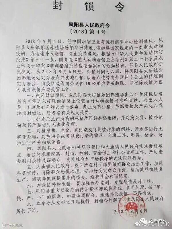 下面讲讲另外一件大事:非洲猪瘟。昨晚一例, 现在这例是新的,也就是新增两例。后面怕北风一起,进一步南下。最直接的影响是鸡肉越来越贵了!