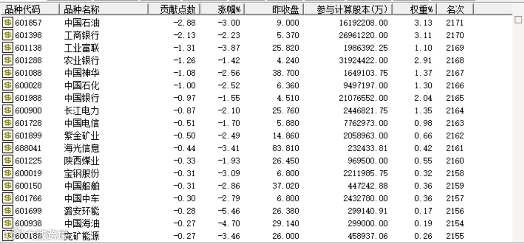 从贡献度来看,中国石油、工行、工业富联、农业银行、中国神华等红利资产对上证指数跌幅最大。