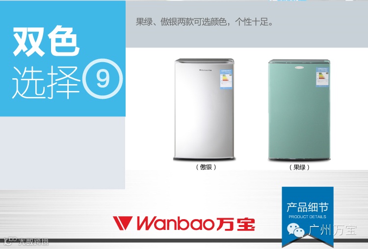 万宝冰箱 BC-92D 属于单门冷藏冰箱,内含档位可调的微冻室。箱体含有银色、果绿两种颜色。款型有暗扣手与镀镉包边两款。内置有玻璃钢搁物架,洁净、耐用;经典设计鸡蛋槽,方便、实用。此外万宝冰箱 BC-92D 名牌压缩机,省电、高效。