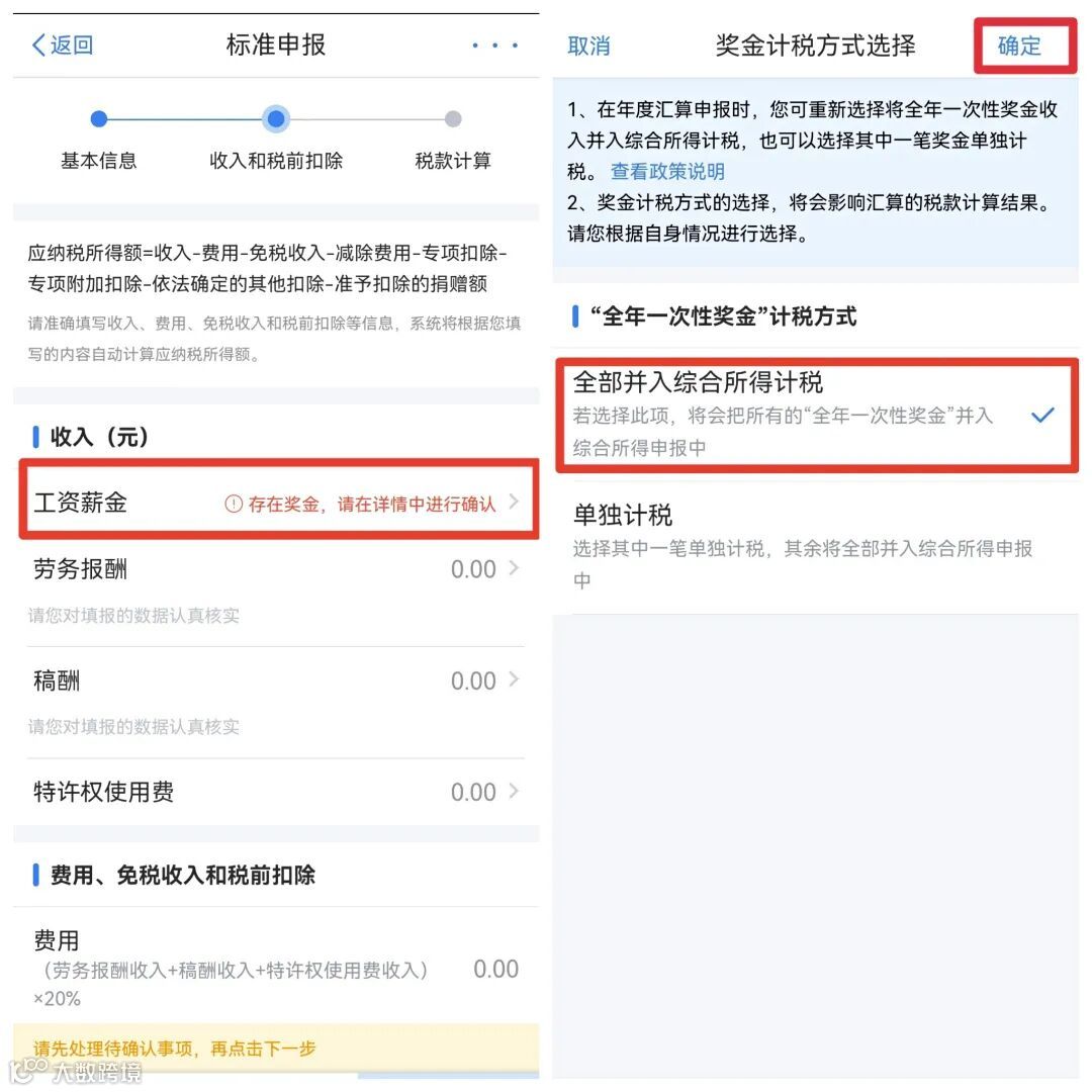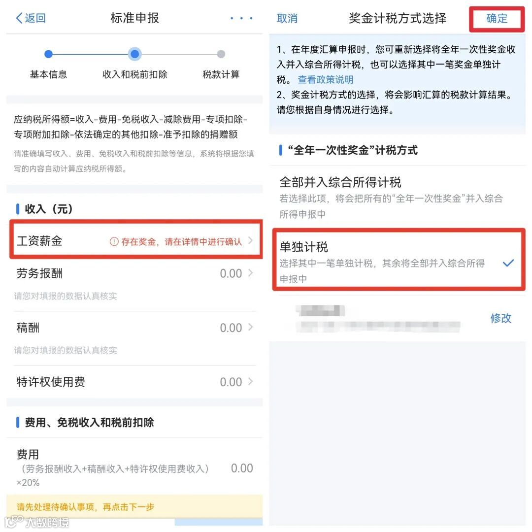 ★A类人员可以通过【全年一次奖金计税方式】选择【单独计税】: