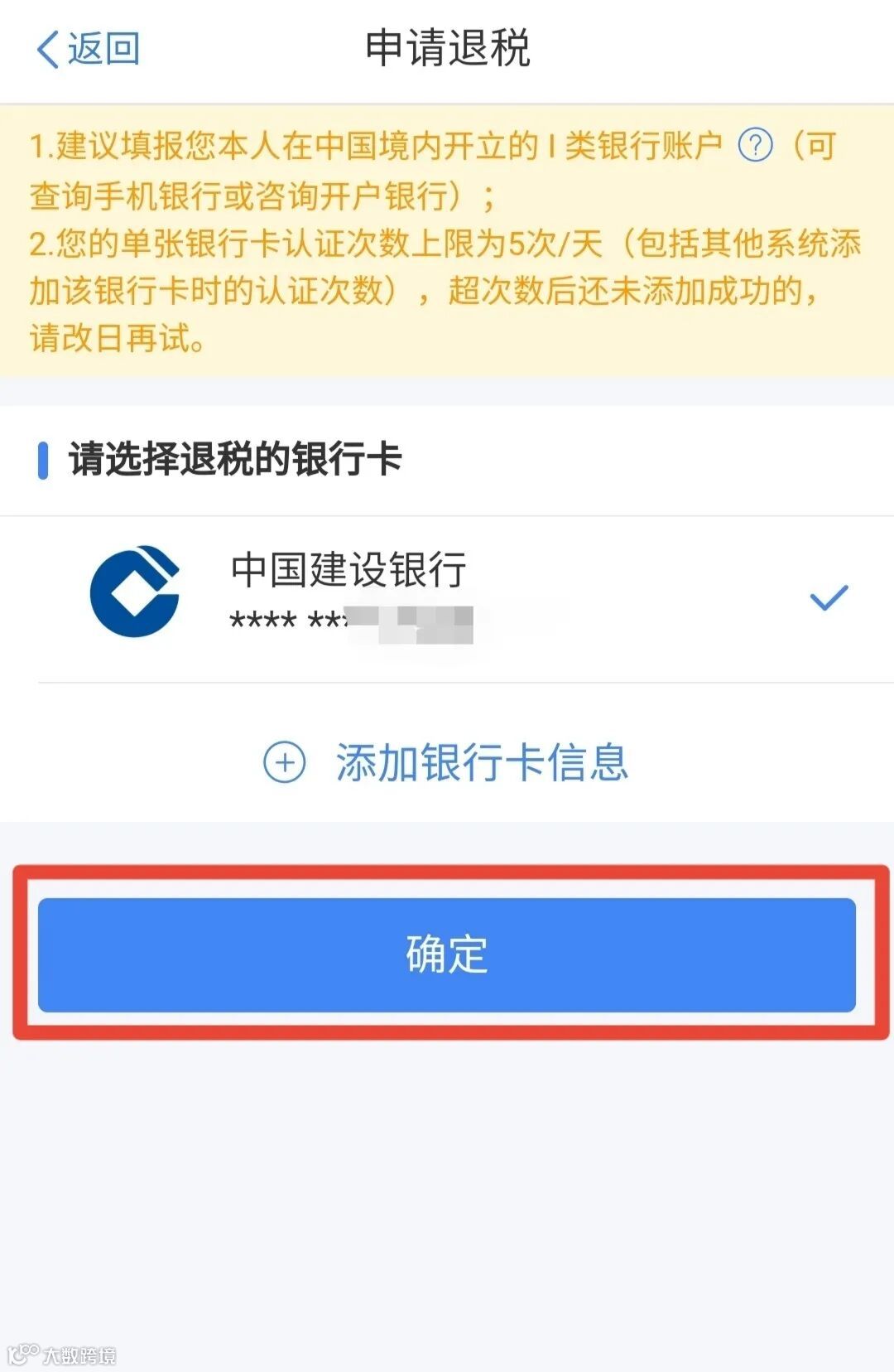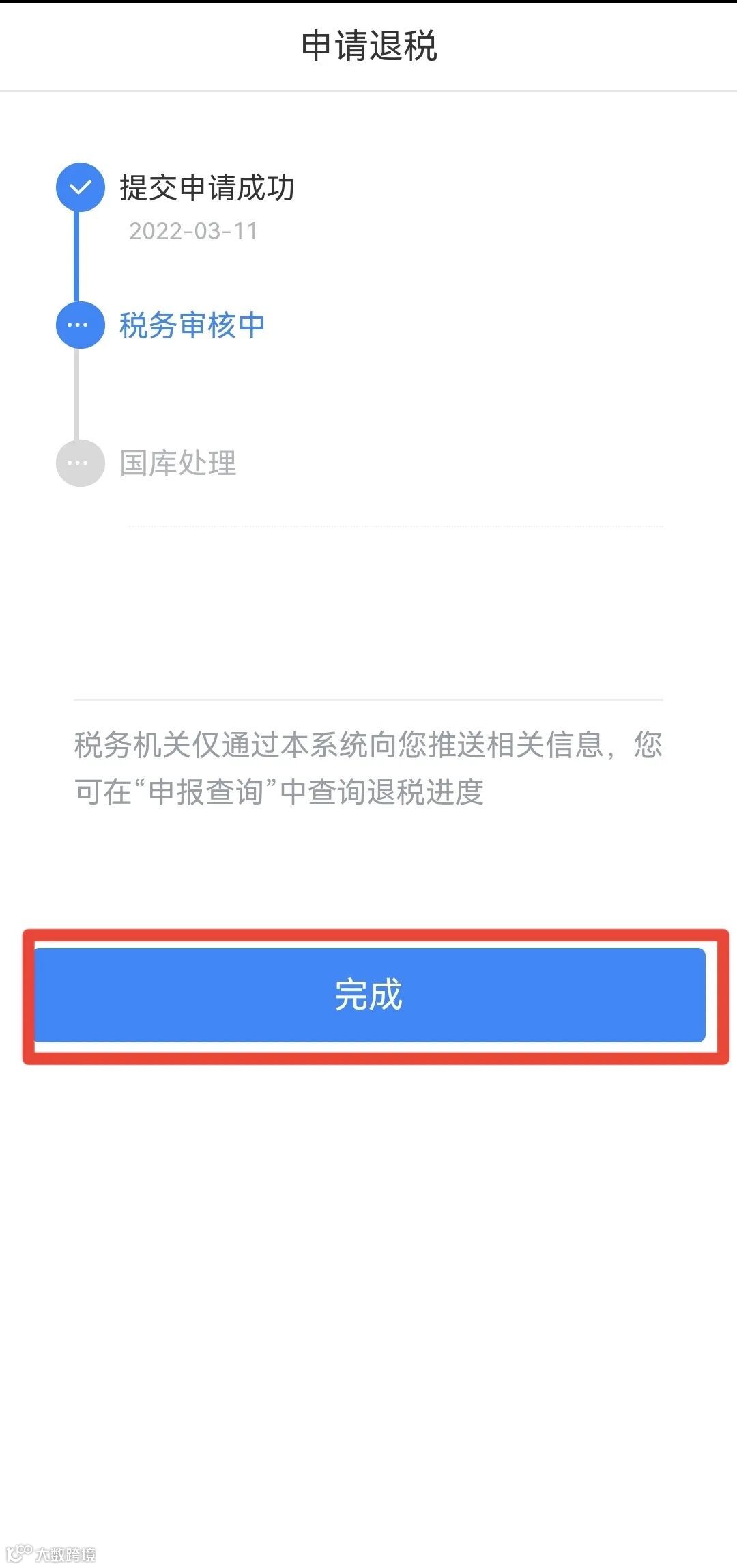 选择银行卡后提交退税申请,可以看到退税申请进度。