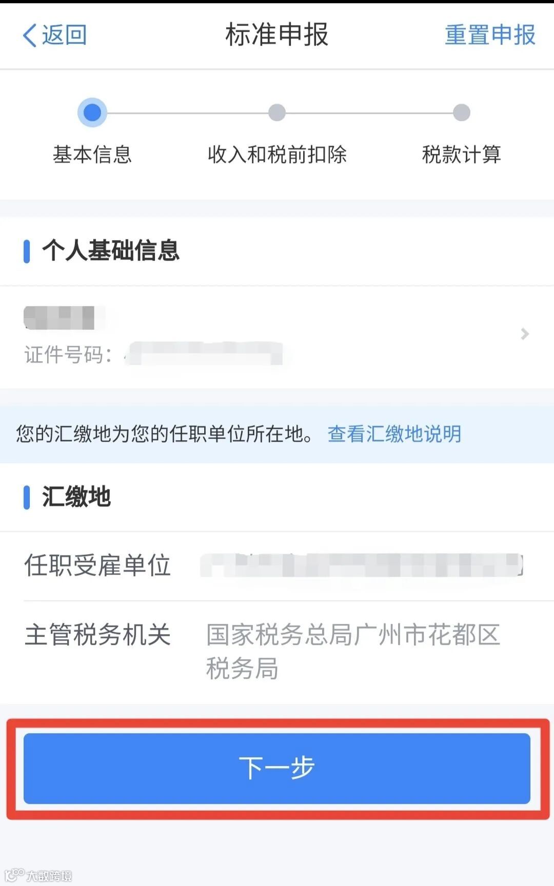 在基本信息页面对个人的基本信息进行确认,确认无误后进入下一步: