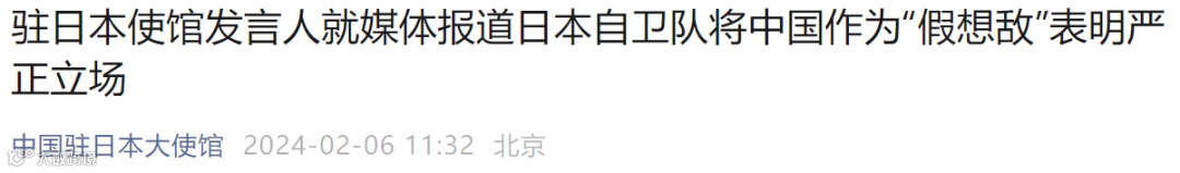 驻日本使馆发言人就媒体报道日本自卫队将中国作为“假想敌”表明严正立场