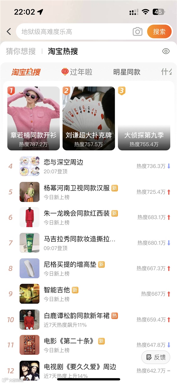 除了章若楠同款毛衣,刘谦在春晚节目中使用的超大扑克牌也登上了淘宝热搜榜,成为爆款之一。