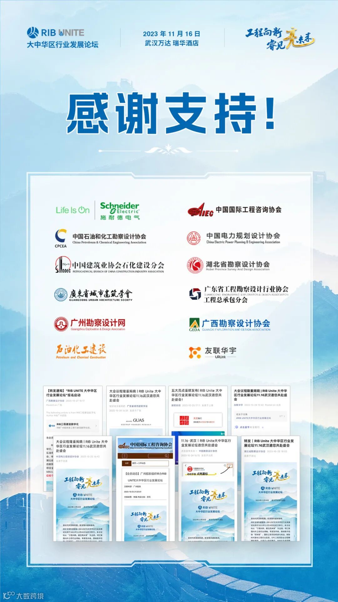 诚挚感谢各大行业协会及合作伙伴对RIB Unite大中华区行业发展论坛的大力支持!