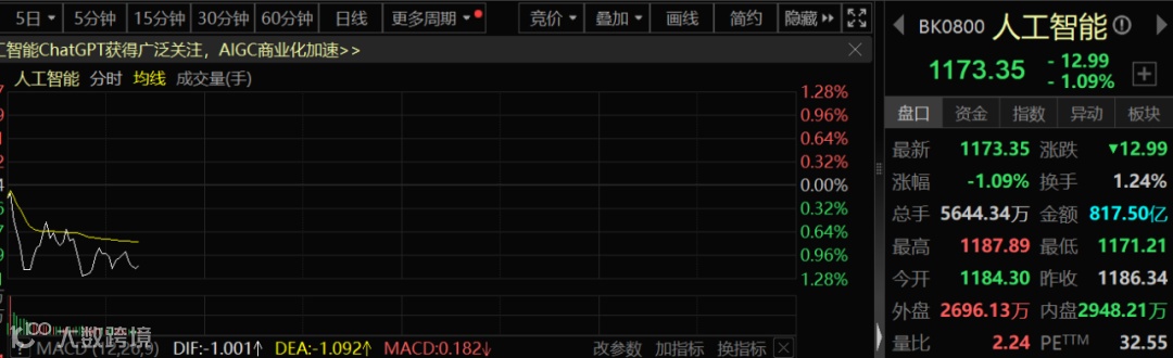 不过,A股市场亦出现了一个不太好的现象。上周末,人工智能的热度到达一个顶点,但从今天早盘来看,这个热度似乎是为出货准备的。今天早盘,人工智能指数大跌超1%。相反,红利指数却大涨,整个市场明显转向防守。全市场上涨个股亦跌至1000只附近。与此同时,虽然人民币升值,但北上资金并未大举杀入。