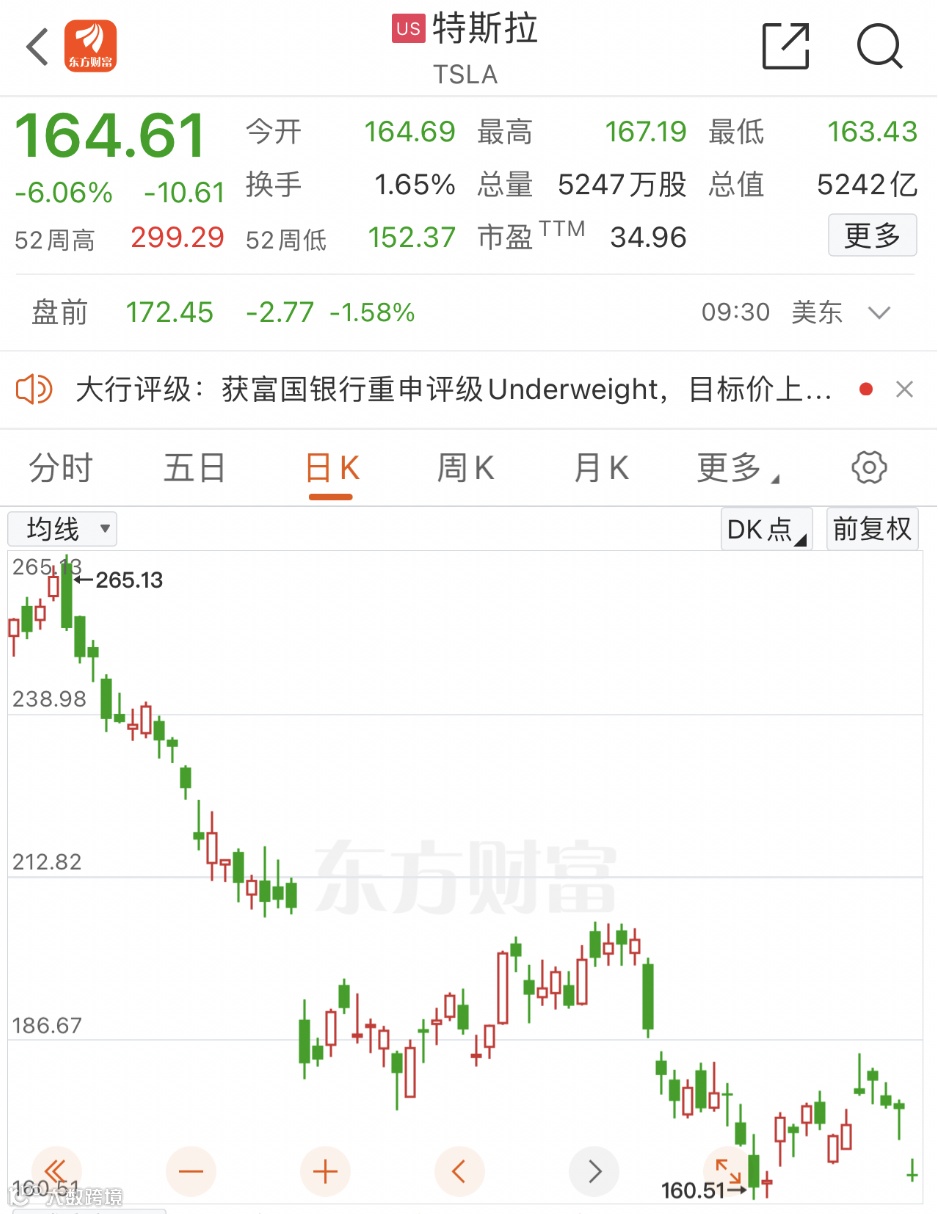 今日晚间,美股新能源汽车股多数下跌,龙头股特斯拉暴跌超6%。