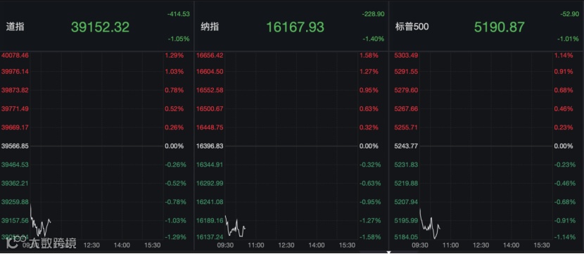 今日晚间,美股市场集体重挫,三大指数低开低走,截至北京时间22:30,标普500指数、道指均跌超1%,纳指大跌1.4%。