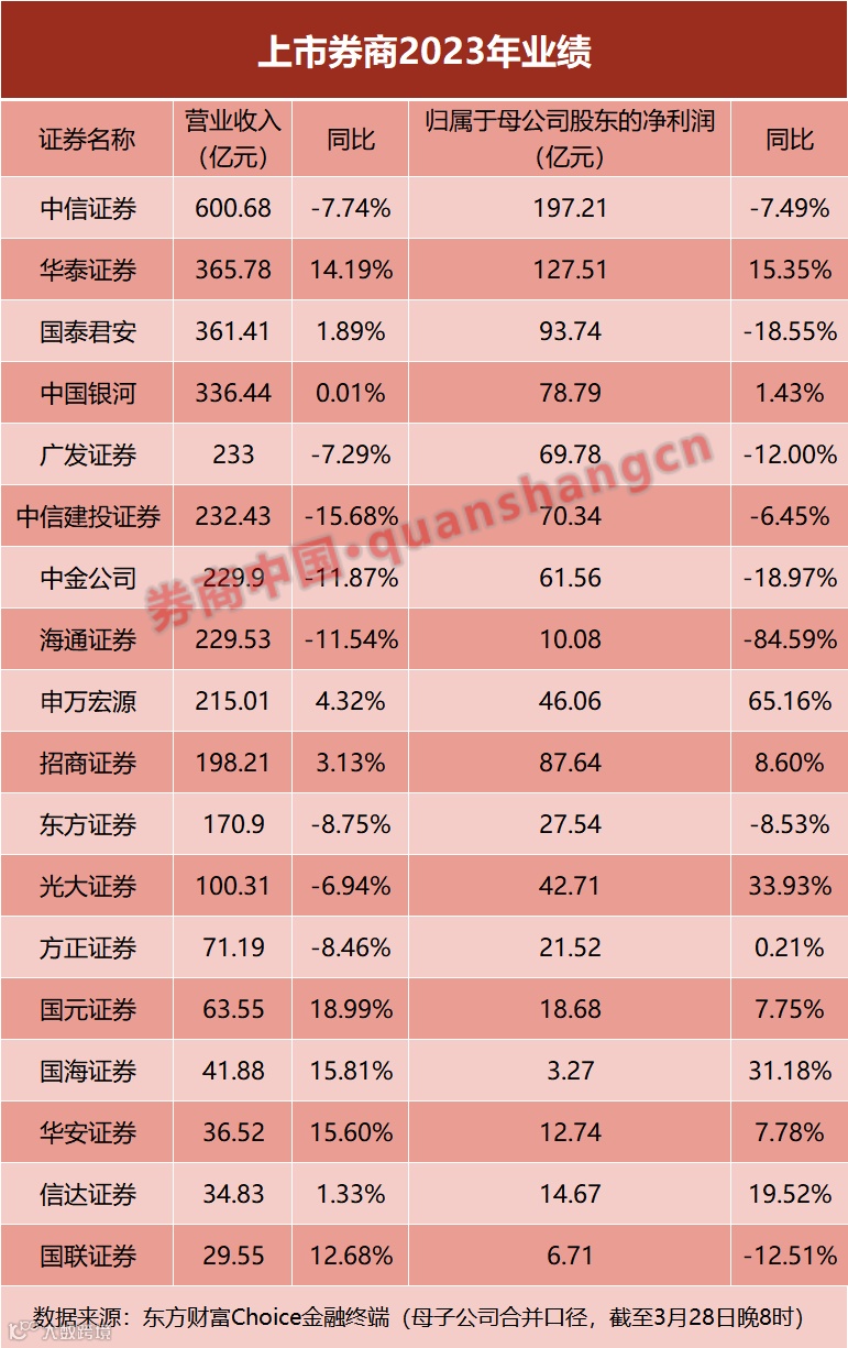 3月28日晚间,包括华泰证券、中国银河、海通证券、国泰君安、中金公司等一批上市券商陆续披露年报。